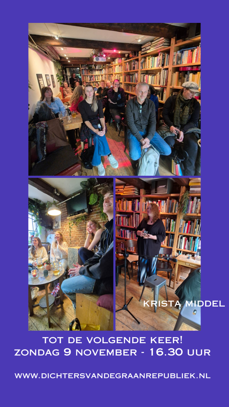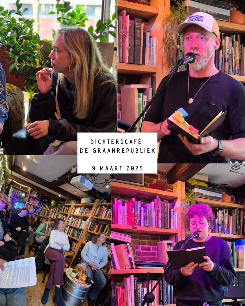 Er is een dichterscafé op de 2e zondag van de maand om 16.30 uur in literair Café De Graanrepubliek | Gedempte Kattendiep 11 | 9711 PL Groningen